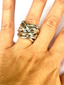 Anillo en plata de 925 mm con formas desiguales ancho en acabado brillo y con baño de rodio(talla n. 16)