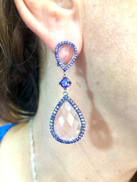 Pendientes en plata de ley de 925mm con amatistas facetadas engastadas. Cierre omega