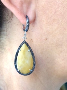 Pendientes plata de ley de 925mm con cuarzo fume y circonitas engastadas. Cierre de pala