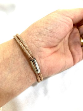 Pulsera en plata de ley con baño de oro rosa con perla natural irregular. Cierre imán.